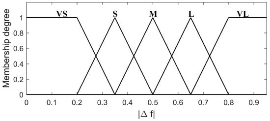 The absolute value of the rate of change in the grid’s frequency is represented by the first membership (Figure 3), whereas the available reserved power is represented by the second membership function (Figure 4). In this paper, frequency drop less than 0.2 Hz is defined by the fuzzy sets as very small (VS) and above 0.8 Hz is defined as very large (VL).
