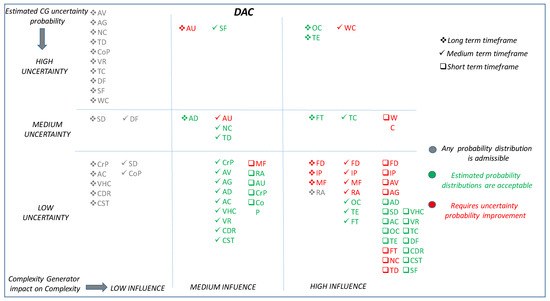 Table 4. CGs influence for DAC at each time horizon. - Uncertainty of Complexity Generators. Uncertainty is high, medium or low, depending on the level of knowledge and confidence of the associated information at each time horizon. When approaching to the time of operation, available data will be more accurate and therefore uncertainty will be lower. Table 5 illustrates the uncertainty of each CGs at each time horizon in DAC.