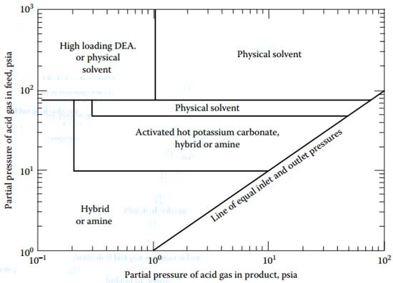The choice of a specific gas sweetening process depends mostly on the material itself, the required selectivity, costs, environmental requirements, and the final product (quantity, composition). The diagram in Figure 2 can be used to choose the process [48].