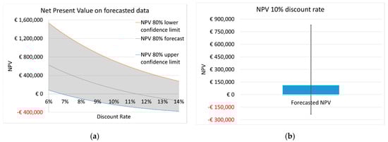 When comparing more investment alternatives, higher NPVs are preferred [62,63]. The discount rate is defined as a risk-free rate. Given the risks of the project and using similar investments, researchers approximated the discount rate to be 10% based on a previous study [57]. Finally, according to the NPV calculated is whether the investment pays off.