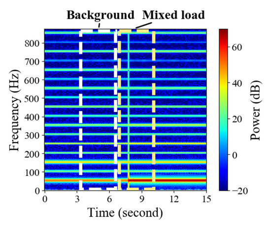 The higher the sampling frequency, the richer the information obtained. Multiple appliances could be distinguished by high-frequency signatures. Previous research showed that when the sampling rate was as high as 1 MHz, the EMI signatures of almost all appliances were distinguishable on the spectrograms [18], but the signatures could not be transmitted over a long distance, even in tens of square meters house. Low-noise data with no background load has been measured in some datasets [19,20], so there is no need to address these problems with complex networks.