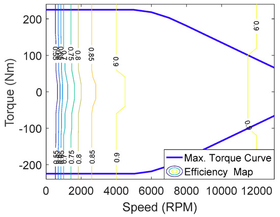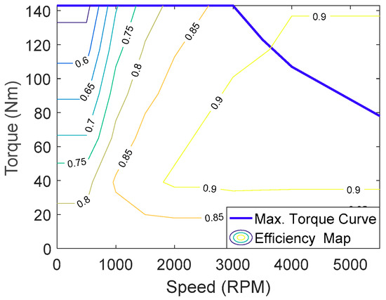 Efficiency map of the traction motor.