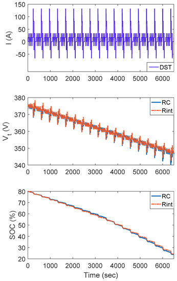 The load current profile of 18 consecutive dynamic stress test (DST) [35] in Figure 10 is employed to evaluate the validity of using the Rint model to approximate the RC model.