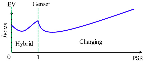 An instantaneous cost function , that consists of the fuel consumption rate of the genset and the equivalent fuel consumption rate of the battery as shown below, is minimized to find the optimum PSR based on the equivalent fuel consumption minimization strategy (ECMS) concept: