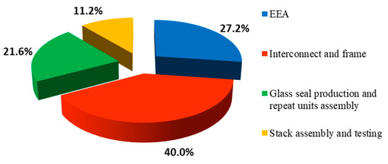 Stack manufacture. Reference flow: 1 SOFC stack, net power 10 kWel (data from [40,57]).