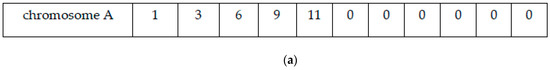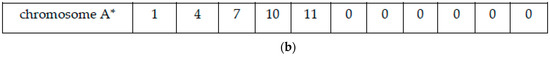 Figure 5. Operation diagram of chromosome mutation. (a) Chromosome A before mutation; and (b) chromosome A* after mutation.