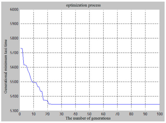 Figure 7. The minimum taxiing time curve generated using the genetic algorithm.