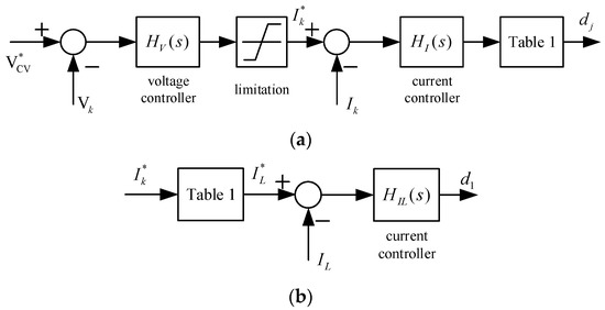 Block diagram of the equalized charging controller, where k = 1,2 and j = 2,3, (a) the dual-loop controllers of charging two batteries, (b) the inductor current controller.