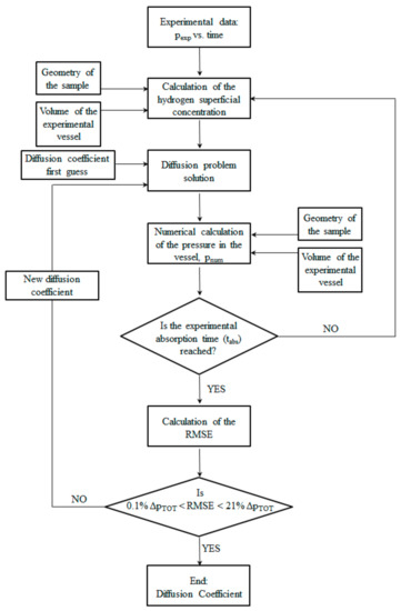 The entire simulation is repeated by considering a new diffusion coefficient able to reduce the RMSE. Particularly, the diffusion coefficients accepted in this analysis are those able to provide an RMSE in the range between the 21 and the 0.1% of the total pressure drop (ΔpTOT) measured in each single experiment. Figure 2 provides the flow chart of the numerical code.