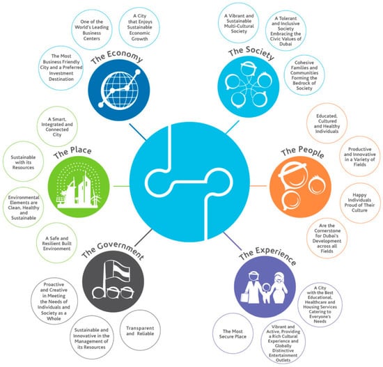 All three have adopted comprehensive visions or strategies for the future direction of their societies alongside more tactical or sector-specific strategies. The visions carry the respective names of “Qatar National Vision 2030”, “Abu Dhabi Policy Agenda 2030”, and the “Dubai Plan 2021” [,,]. All three are directly supported by their respective highest leadership and contain a number of key priority areas or pillars on which government policies should be based.