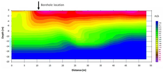 In order to ensure application of this methodology, seismic refraction tests were conducted on the area where the borehole of study is located. The results of these tests are provided in Figure 3.