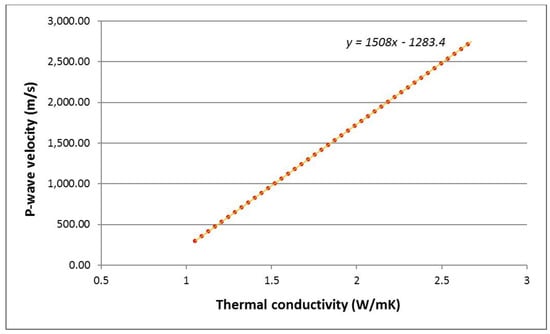 By measuring P wave velocity and thermal conductivities in the study area, the correlation between both parameters was obtained (graphically presented in Figure 4). This is based on pairing the lowest thermal conductivity value with the lowest p wave velocity (in the same area) and the highest thermal conductivity with the highest p wave velocity. More information on this method is provided in the mentioned published research.