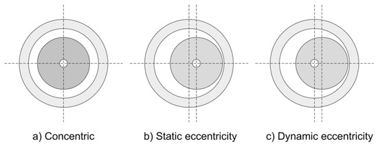 Examples of a machine: without eccentricity (a); static eccentricity (b); and dynamic eccentricity (c).