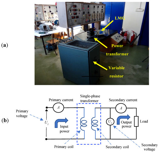 Figure 4b—Electrical diagram of experimental setup). The variable resistor is used for transformer loading, i.e. it is used to vary the transformer load. All currents, voltages and powers were measured with power analyzer LMG (