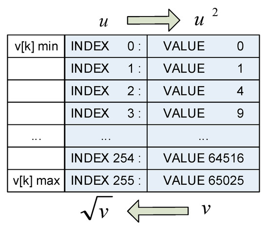Figure 7b) stored in a kind of lookup table. This squared datum is 16-bits long.