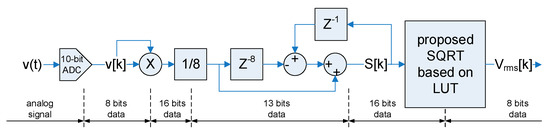 Figure 6. Otherwise, the squared value of a 10-bit datum would be that of a 20-bit one, with the result that the microcontroller’s basic data size would be exceeded and there would be a need for a more than double register size register to define the result.