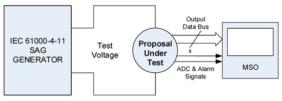 18] the system uses the wavelet transform to detect voltage drops. It uses a sampling time of 156 μs, and although the calculation time is less than the acquisition time (32 μs), the final time needed to detect the voltage drop is much greater, on the order of 5 ms, since it needs to acquire 32 samples. This system uses a DSPIC processor.