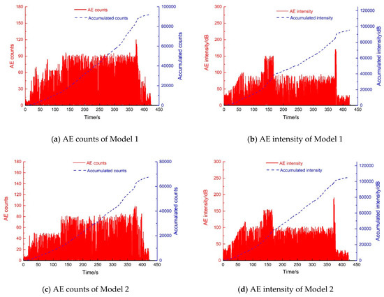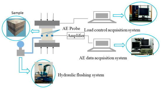 - The experimental results indicate that AE signals can be detected in the whole hydraulic flushing process. In the elastic stage, AE signals increase with the rise of the load. In the stable load stage, the fractures are compacted, so AE signals change little. After the hydraulic flushing begins, the changes in AE signals are greatly affected by the change in hydraulic pressure. At the end of flushing, AE counts and intensity both reach the peak values.