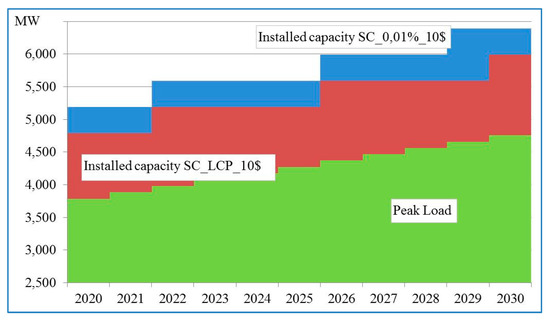 - SC_0.01% $10—in this scenario, LOLP was limited at 0.01%, VOLL was taken at the level of $10 USD/kWh,