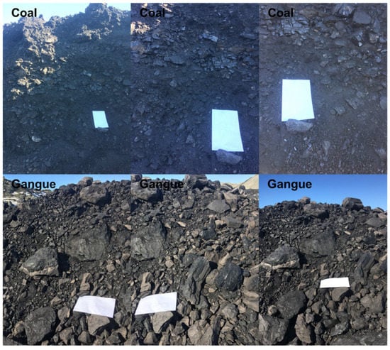 Since only a small portion of our validation pictures were from the field, which is a limit for demonstrating the model applicability in engineering practice, we took photos (Figure 9) from a washing plant stockpile at a coal mine to test the model performance. These photos included three coal photos and three gangue photos which were shot after coal separation. Our model accurately recognized these six photos without any misclassification. Although there was a relatively small number of test samples, this demonstrated that the model can be used in engineering practice.