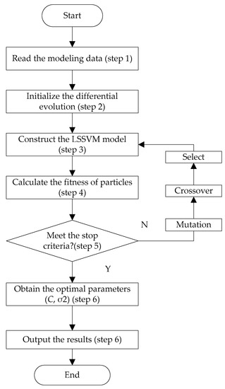Flowchart of the differential evolution-based least square support vector machine (DELSSVM) algorithm.