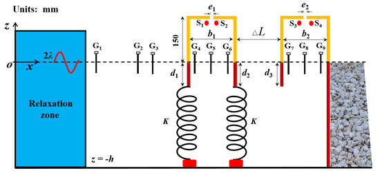 As shown in Figure 1, the length of the hydrostatic tank L is 6 m, and total height is 1.44 m with a static water depth h of 1.24 m. The diameter of the floating cylinder D is 0.1523 m, and the offset displacement is 0.0254 m. Additionally, the two ends of the tank are equipped with a one-meter long relaxation zone to absorb waves generated by the falling cylinder.