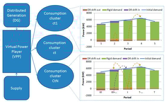 Figure 1, the VPP can shift part of the load from period 3 to period 4. For a generic cluster CtN, seen in the bottom of