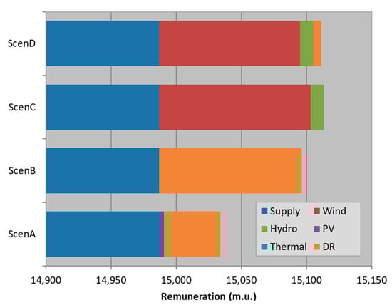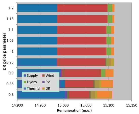 Figure 11 presents the remuneration of each resource for a variation on the DR price between 80% and 120%. This means that the prices in