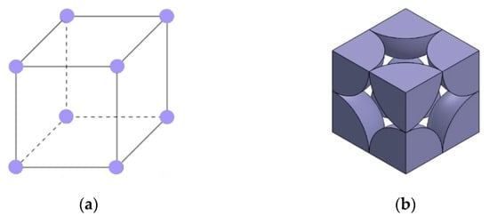 According to a conjecture presented by Kepler at 1611 (one of David Hilbert problems), no three-dimensional arrangement of spheres has a higher PF than the hexagonal close packing (HCP) [47], see Figure 4, where (a) indicates the position of the spheres’ centers, and at (b), the spheres are shown in the lattice. The corresponding PF is approximately 0.74. In 1998, Thomas Hales presented a proof of the conjecture of Kepler, assisted by a computer program named proof assistant, Isabelle theorem prover HOL Light®, and such proof was finally accepted in 2017 [48]. As shown in Figure 4b, the diagonal of each face of the cube is two times the diameter of the spheres.