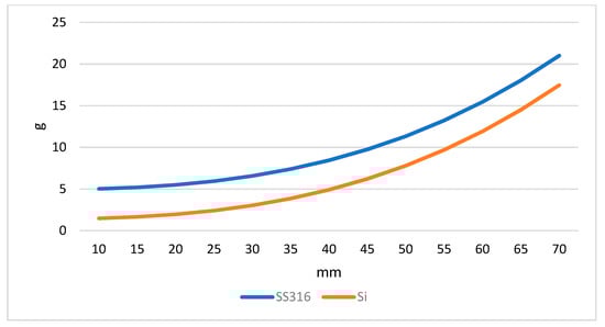 Initially, the sphere was considered to be made of one single material. The set of materials studied for the sphere is referred to in Table 4, as well as their most relevant properties connected with the current study. Silicon (Si) was considered only for the microchip.