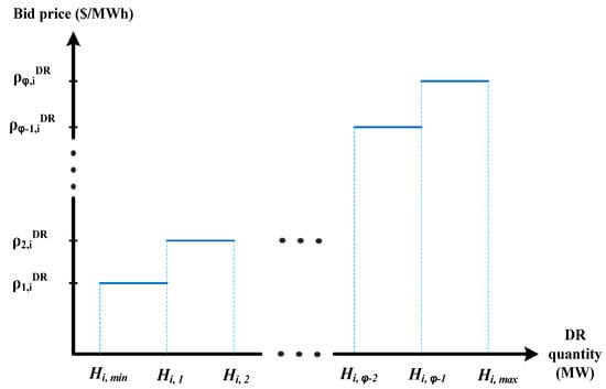 In this paper, bid-quantity package offers including the amount of load curtailment and related requested prices are considered as the model of RLs. A typical bid-quantity package for the ith node is proposed in Figure 2 and formulated by (52)–(54).