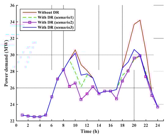Hourly operation scheduling of the MTs, DR programs and ESSs in CS1 for the defined three scenarios in MG1, MG2 and MG3 are shown in Figure 6, Figure 7 and Figure 8, respectively. It can be seen that for scenario 2 in all three MGs, due to the increased retail and wholesale market prices, the amount of participated load in DR programs and MTs output power are increased. On the other hand, the amount of responsive loads and MTs output power are decreased in scenario 3.