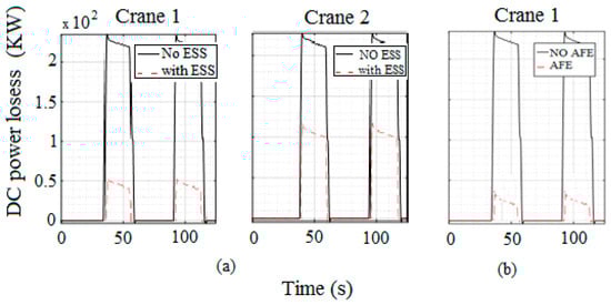 An example for the power losses of (a) the crane 1 and crane 2 (ESS model) and (b) AFE.