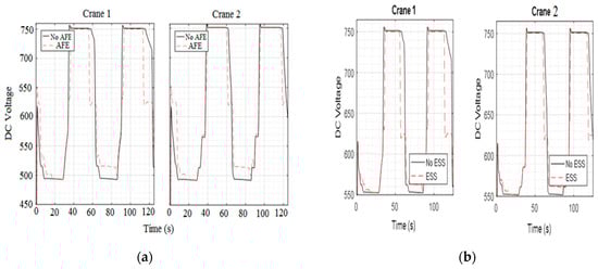An example for the DC voltage curve of network of crane ((a) AFE model (b) ESS model).
