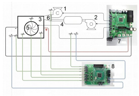 Figure 7 shows the electronic scheme of the NTHS, with the elements (1) to (6) the same previously reported in Figure 4.