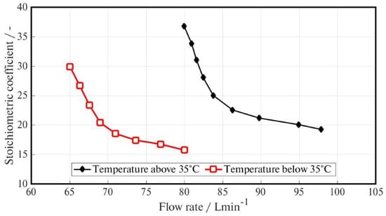 Stoichiometric coefficient vs. flow rate.