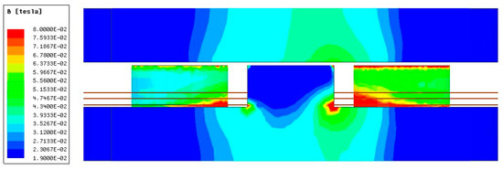 Flux density distribution by FEA 3D simulation.