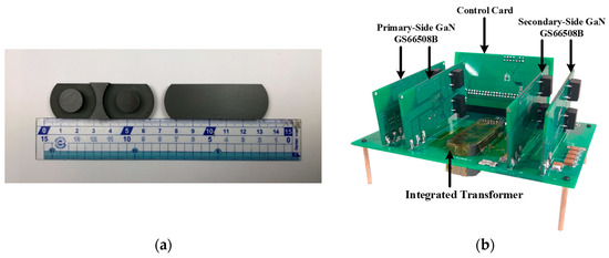 An LLC resonant converter with 1 kW output power and 500 kHz switching frequency was proposed in this study. Figure 16a,b shows the actual core size and circuit diagram, respectively. Table 6 details the components and design parameters used in this study.