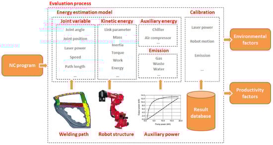 It is necessary for approaches to estimate the energy profile occurring when a welding robot attaches a specific set of stitches, as well as the energy efficiency of the overall processes. To do this, an energy estimation model is required before a new welding robot is introduced into the assembly line. The literature on laser welding focuses on measuring the energy profile of welding a specific assembly. Most research about welding energy consumption concerns estimation of the robot kinetic energy. Currently, there are many energy models of robot arms in the literature. The major energy consumers of RLW are the robot arm, the laser machine because laser generation energy is higher than conventional lasers, and cooling equipment. The ratio of robot motion among major consumers is relatively smaller than for a spot welding robot, which is measured with only kinetic energy use. For this reason, the energy use of each assembly process is different from others because the laser equipment is an additional variable causing fluctuations in the energy profile compared with the spot welding process.