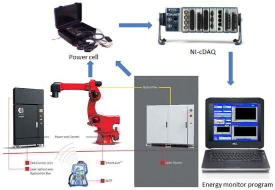 Collection of compensation data involved integrating an energy measurement system with the welding equipment. The system included a power cell, a data acquisition device, and an energy monitoring program. The power cell was connected with the power supply of the robot controller and the laser machine to measure the current and voltage used. The calculated power was transferred to the data acquisition device, which converted the power signal into digital values sampled at a rate of 5000 Hz. The energy monitoring program stored the resulting energy profile with a time series dataset.