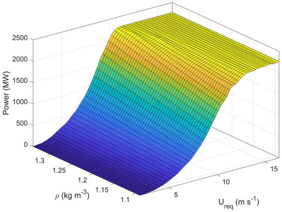Performance of: (a) standard power curve with ( = 1.19 kg·m−3); (b) ten-minute modified power curve with ( = 1.19 kg·m−3); and (c) power surface.