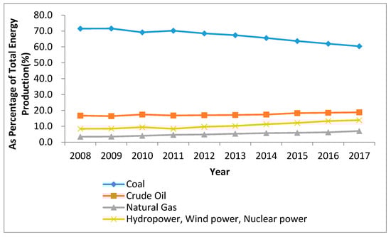 China’s energy consumption structure map for 2008–2017 (Data source: China Statistical Yearbook (2009–2018)).