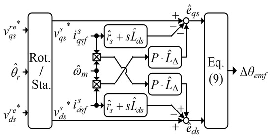 P represents the pole pairs of rotor poles. When the motor parameters are known, the extended back-EMF is calculated as follows: