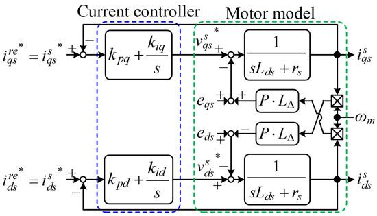The stator voltage for the PMSM in the rotor reference frame can be expressed as follows:
