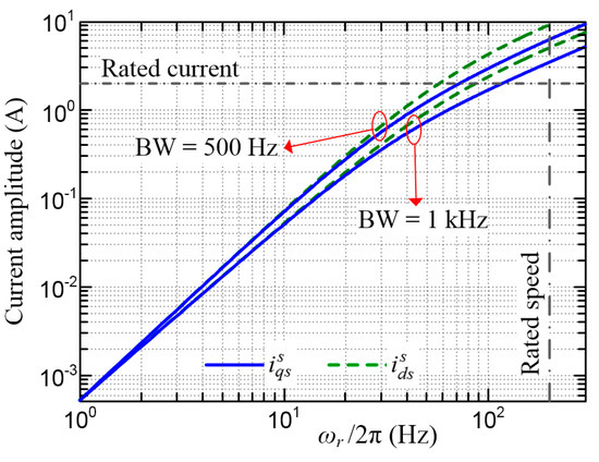 Figure 5 shows the stator current responses at a set current controller bandwidth (BW) of 500 Hz and 1 kHz. The PMSM parameters used for the calculations are presented in