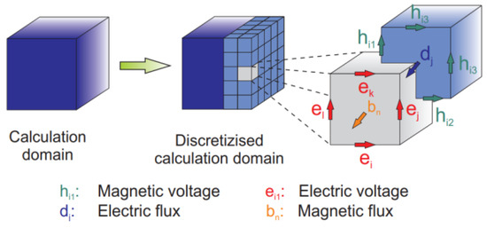 Dual discretization grids with the allocation of voltage and flux components in the mesh.