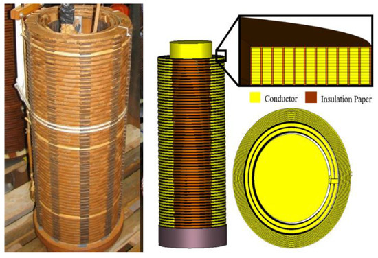 In the literature, mainly circuit models (black box, white box, grey box, etc.) are employed for interpretation of FRA results [11,12,13]. In these circuit models, different sections of transformer windings are represented by circuit elements, such as resistors, inductors, and capacitors, in which the values are extracted either by analytical equations or through finite element methods (FEM). Afterwards, the values of these parameters are altered to model and study the impact of various mechanical defects on FRA traces. However, these circuit models have some drawbacks, such as they require an accurate estimation of the winding parameters to model and study the impact of different faults on FRA traces. Secondly, their response is limited to a certain frequency (up to 500 kHz) due to difficulty in solving turn-based parameters. Thirdly, some mechanical changes are difficult to model, and the conversion process involves extra uncertainty. In addition, constant values of the parameters are employed while these parameters are frequency dependent. Lastly, in all the circuit model studies, the values of one or two parameters are changed to investigate the impact of various mechanical faults, while mechanical deformations like radial deformation, telescoping, and conductor tilting are much more complicated and involve the contribution of more than one parameter [6]. While to detect the minor winding deformations, precise and accurate fault simulation is essential. Furthermore, not much attention was given to the impact of incipient faults on different connection schemes, especially short-circuit and inter-winding connection schemes, which proved to possess high sensitivity against winding deformation faults [6].