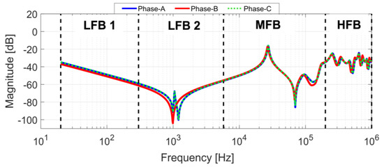 CIW: In LFB2, the first resonance frequency is affected. While in MFB and HFB, the resonance frequencies are shifted to the right due to the decrease of the impedance of the winding.