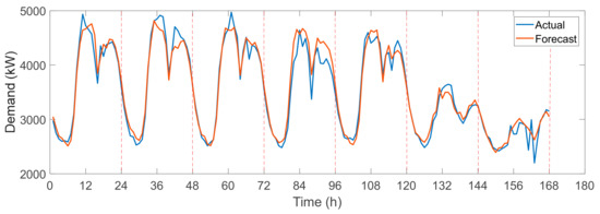 As an example, Figure 6 shows the actual and predicted load for a complete week in the test dataset.