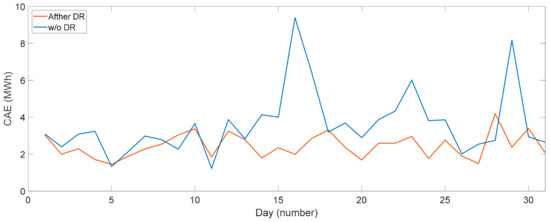 Column five in Table 11 presents the symmetry of the effort. Day 14 requires a net increase of demand (symmetry = 7.06), whereas day 23 basically requires a strong shaving of demand (symmetry = 0.038). The score for the performance of flexible demand depicts that flexible loads follow with enough accuracy their targets (performance indicator is around zero). Moreover, from Table 11, the aggregator can deduce that flexible demand fails in days 5 and 28 (performance has the greatest values and over 1), but these days do not represent a big problem, because the effort required from demand (balance_mileage) is low (1.52 and 2.08). These results and the results previously discussed in Section 3.4.2 help both the customer and the aggregator to familiarize themselves with the demand response and the usefulness of short-term predictions to manage their new role as prosumers or energy aggregators.